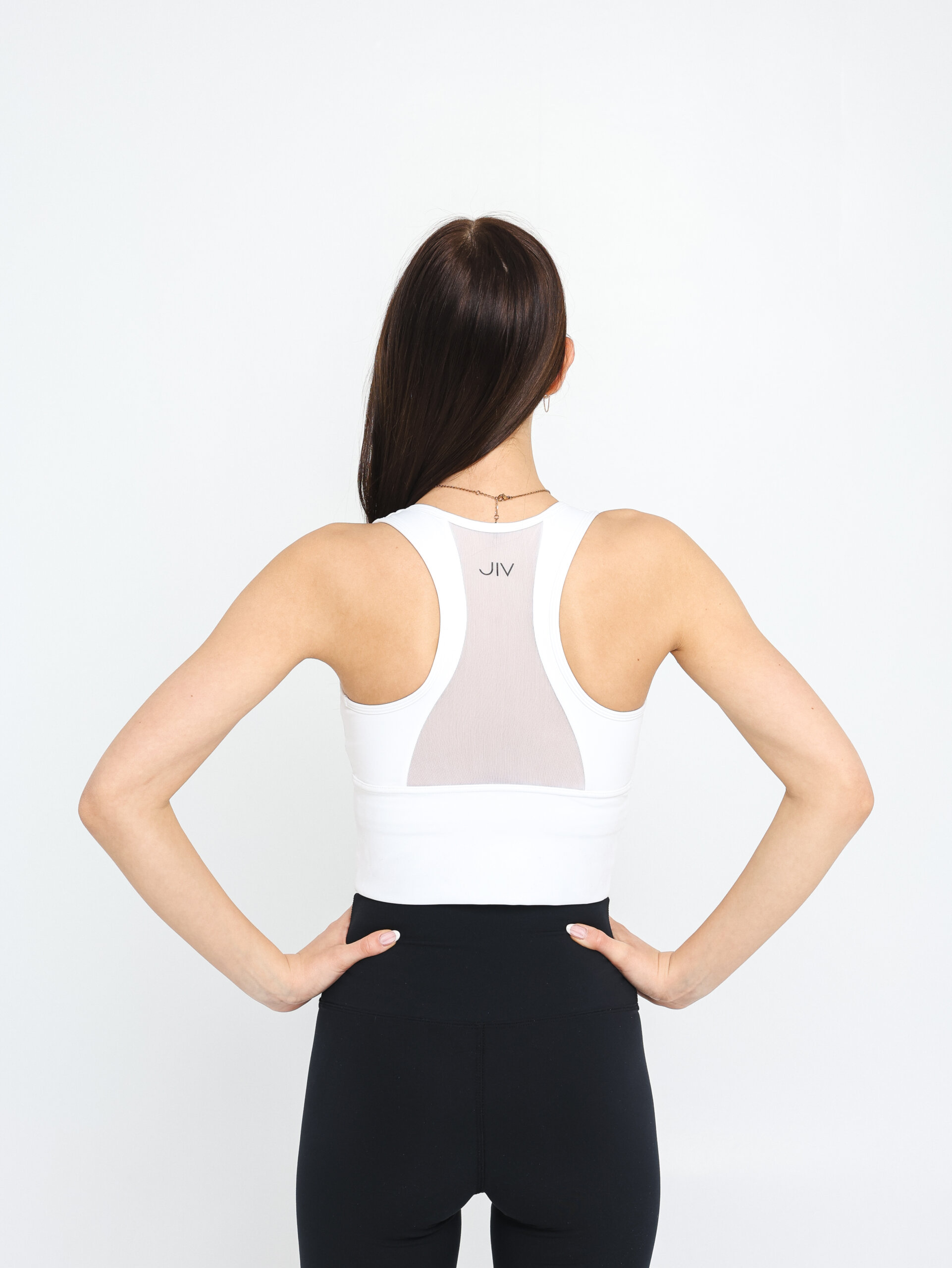 The Cloud Sports Top from JIV is a sports bra that features extra support and length. The Cloud Top was made to be light, strong, and feminine. This top has mesh details and pairs perfectly with the other Cloud collection items!